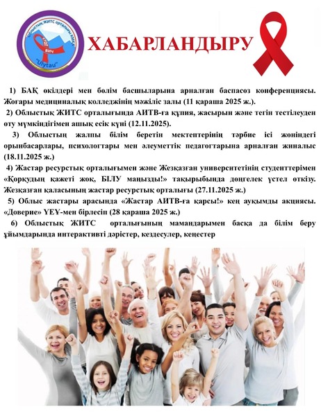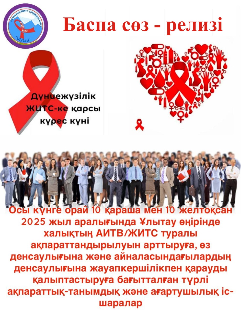 Дүниежүзілік ЖИТС-ке қарсы күрес күні жыл сайын 1 желтоқсанда атап өтіледі. Осы датаға орай Ұлытау өңірінде халықтың АИТВ туралы хабардарлығын арттыру, өз денсаулығына және басқалардың денсаулығына жауапкершілікпен қарауға шақыратын іс-шаралар өткізілетін болады. Дүниежүзілік ЖИТС-ке қарсы күрес күнінің 2025 жылғы тақырыбы: «АИТВ-ға қарсы күрестегі қиындықтардан – тиімді өзгерістерге»